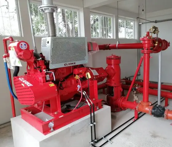 Los sistemas de bombeo contra incendio son equipos mecánicos que utilizan la fuerza centrífuga para mover un fluido de un lugar a otro aplicándole energía por medio de una fuente de movimiento (motor) haciendo rotar a un impulsor (rueda con paletas) que se encuentra dentro del cuerpo de la bomba (voluta) y que está en contacto con el fluido, provocando que éste se mueva en una dirección y son capaces de mantener presiones y caudales suficientes durante largos periodos de tiempo, pueden arrancarse manualmente, aunque normalmente su arranque es automático, activado a través de una caída de presión en el sistema o por apertura de un dispositivo de extinción del incendio.